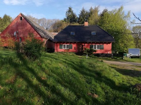 Det røde hus ligger lige nedenfor Sukkertoppen ved Gudenåen, på samme grund som Klostergård Natur (privat natur-genopretnings project). I huset er der plads til små cirkler indendørs ved brændeovnen og stedet bruges som base for natur relaterede initiativer.